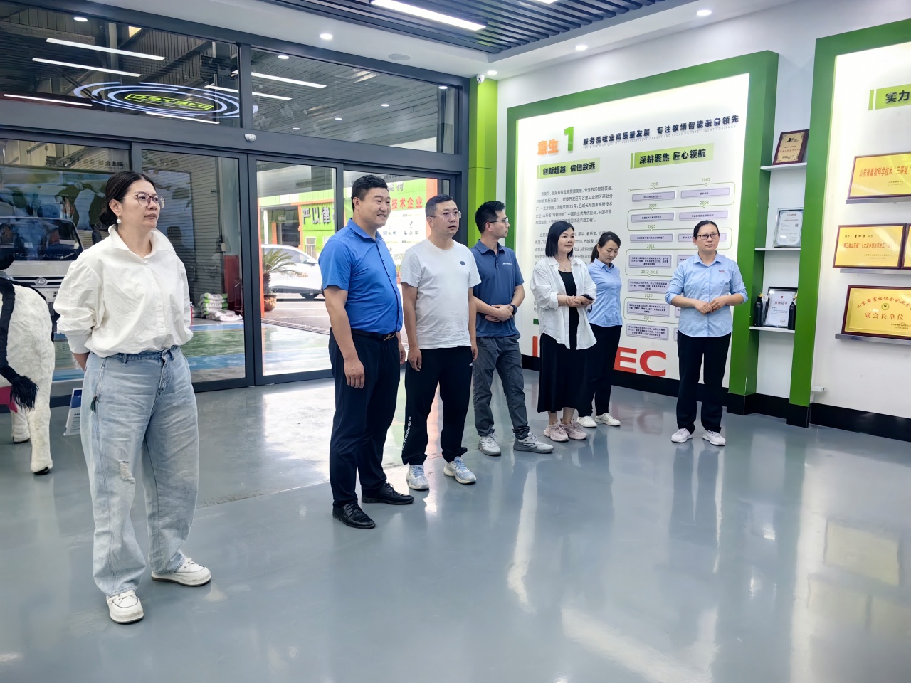 5月16日,赛普农牧来公司参观交流,公司董事长董和银全程配同。实地查看了公司展厅、生产车间及厂区面貌,双方就牧业行业发展及畜牧智能装备等领域进行深入合作。
